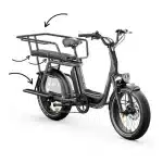 Ensemble de 3 accessoires fréquemment installés ensemble sur le longtail Ritmic Jumbo pour transporter des passagers, notamment des enfants trop grands pour utiliser un siège enfant :
