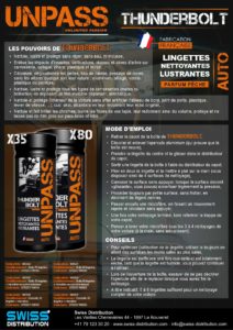 THUNDERBOLT. Conçue pour vous apporter efficacité, facilité et sécurité dans l’entretien de votre voiture, la lingette THUNDERBOLT vous ravira grâce à sa puissance de nettoyage, sa polyvalence et sa capacité à remettre à neuf rapidement sans effort, sans équipement ni contrainte.