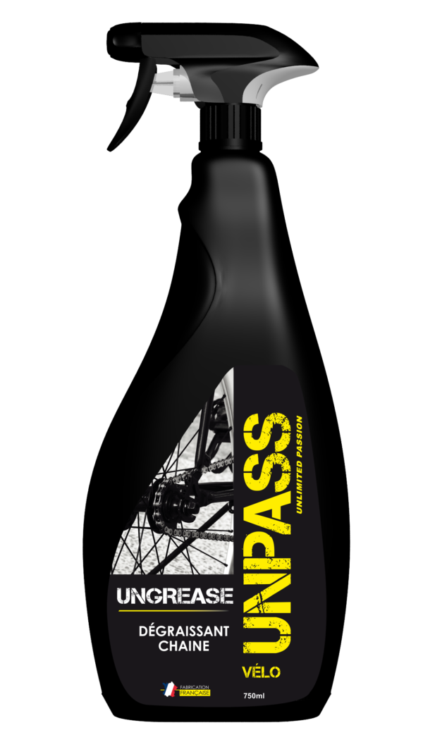 UNGREASE est idéal pour le nettoyage et le dégraissage des chaînes ainsi que de l’ensemble des composants de transmission (pignons, dérailleurs, …).